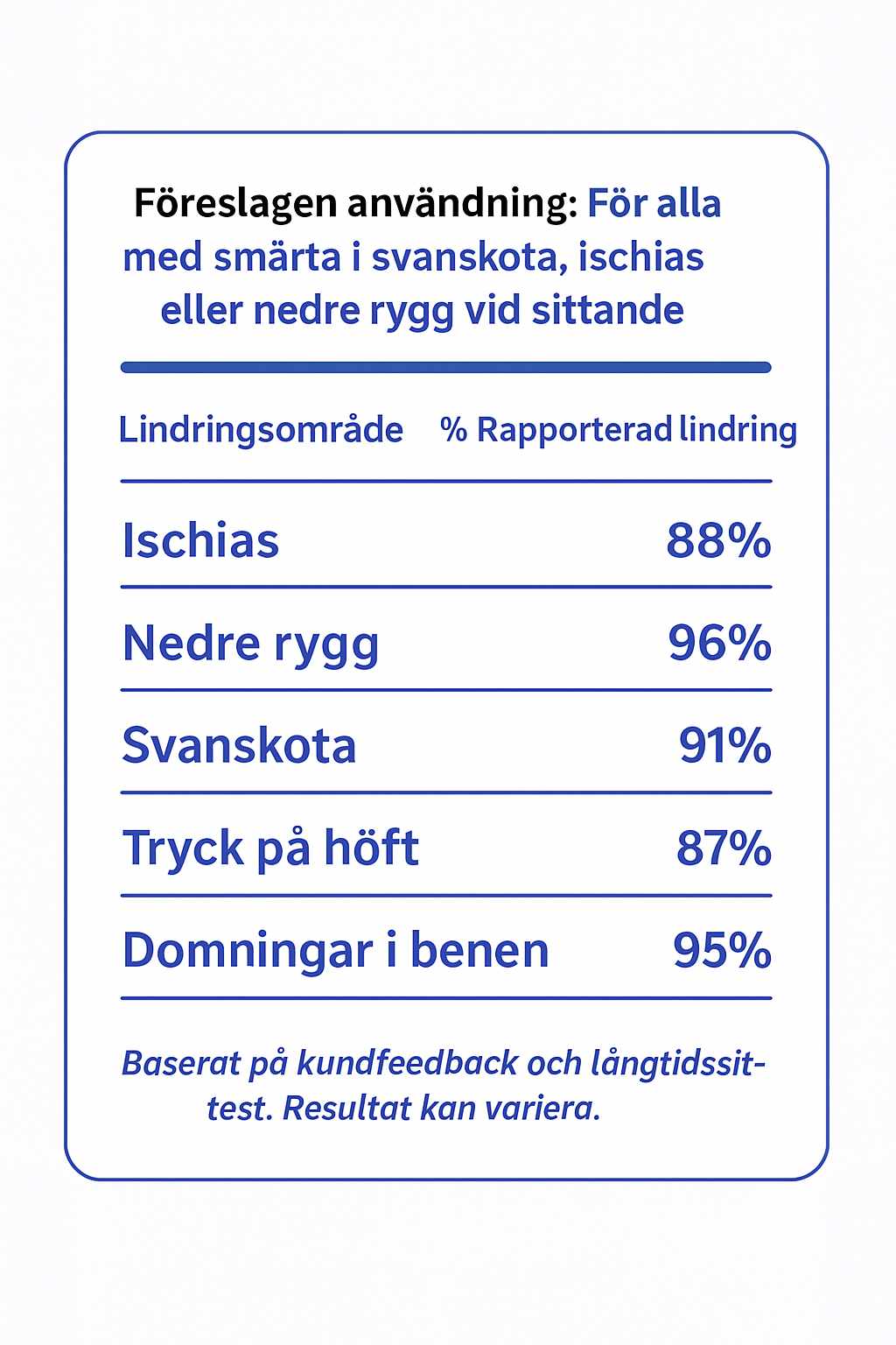 Lindrar smärta i nedre rygg, svanskota och ischias – i vilken stol som helst.