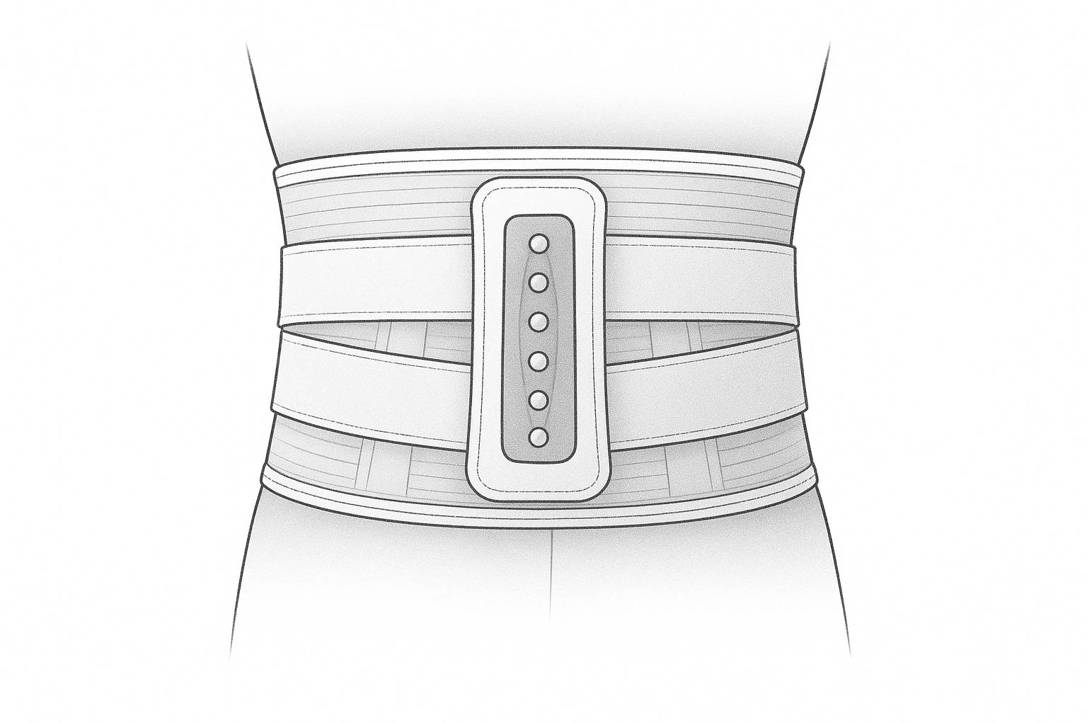 Dra de elastiska banden diagonalt över bålen. Detta låser din ländrygg och SI-led i en stabil position. Du kan justera spänningen – hårdare för tung aktivitet, lösare för sittande eller lättare stöd.