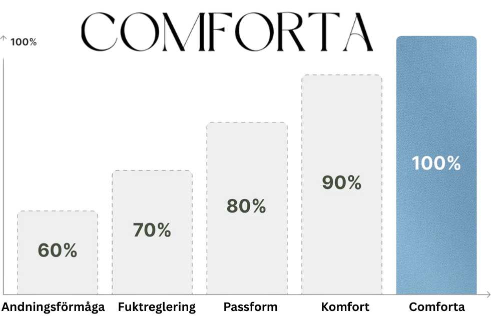 *Notering: Diagrammet visar i procent hur mycket bättre Comfora™ presterar jämfört med standardunderkläder inom varje område.